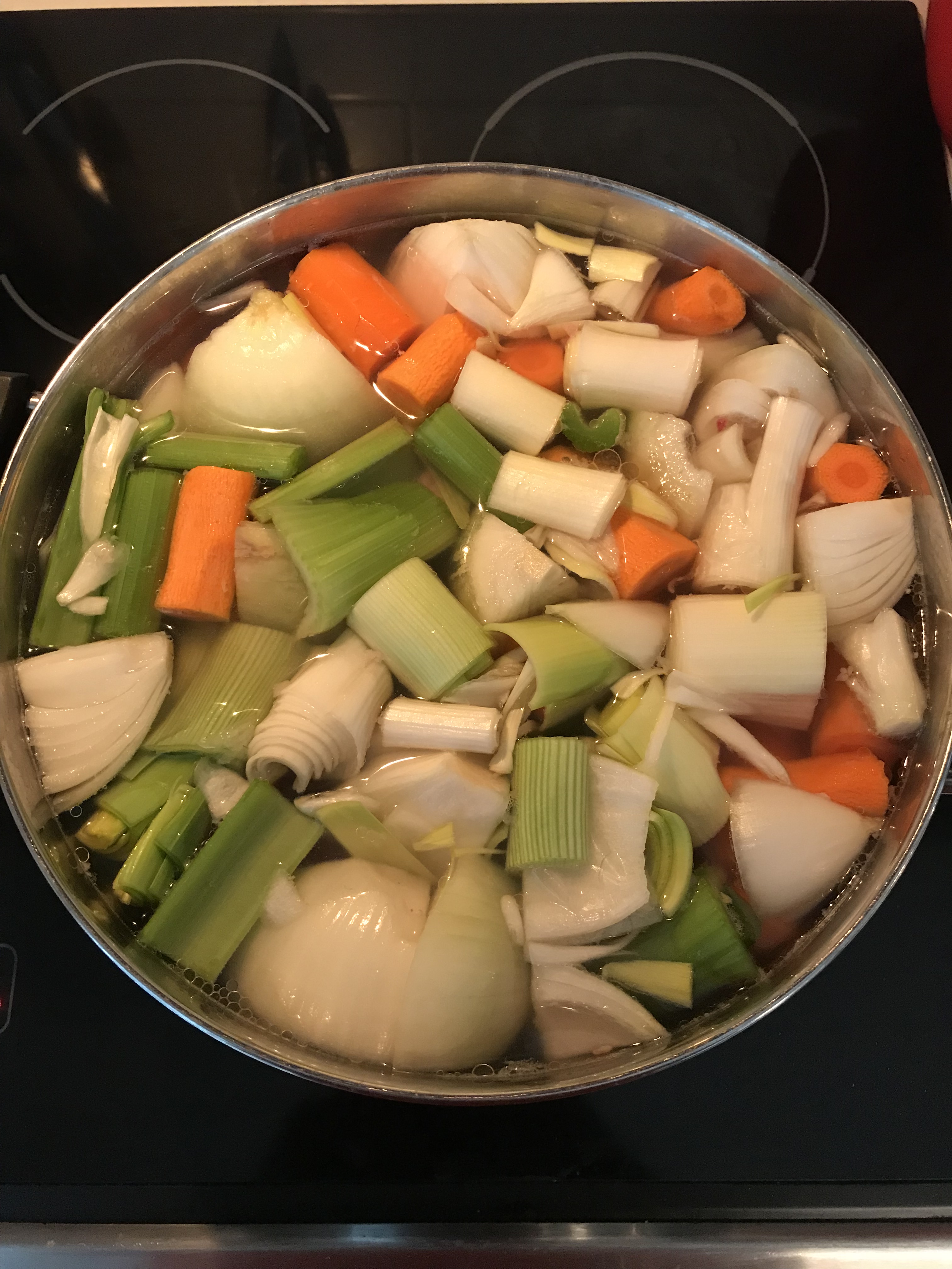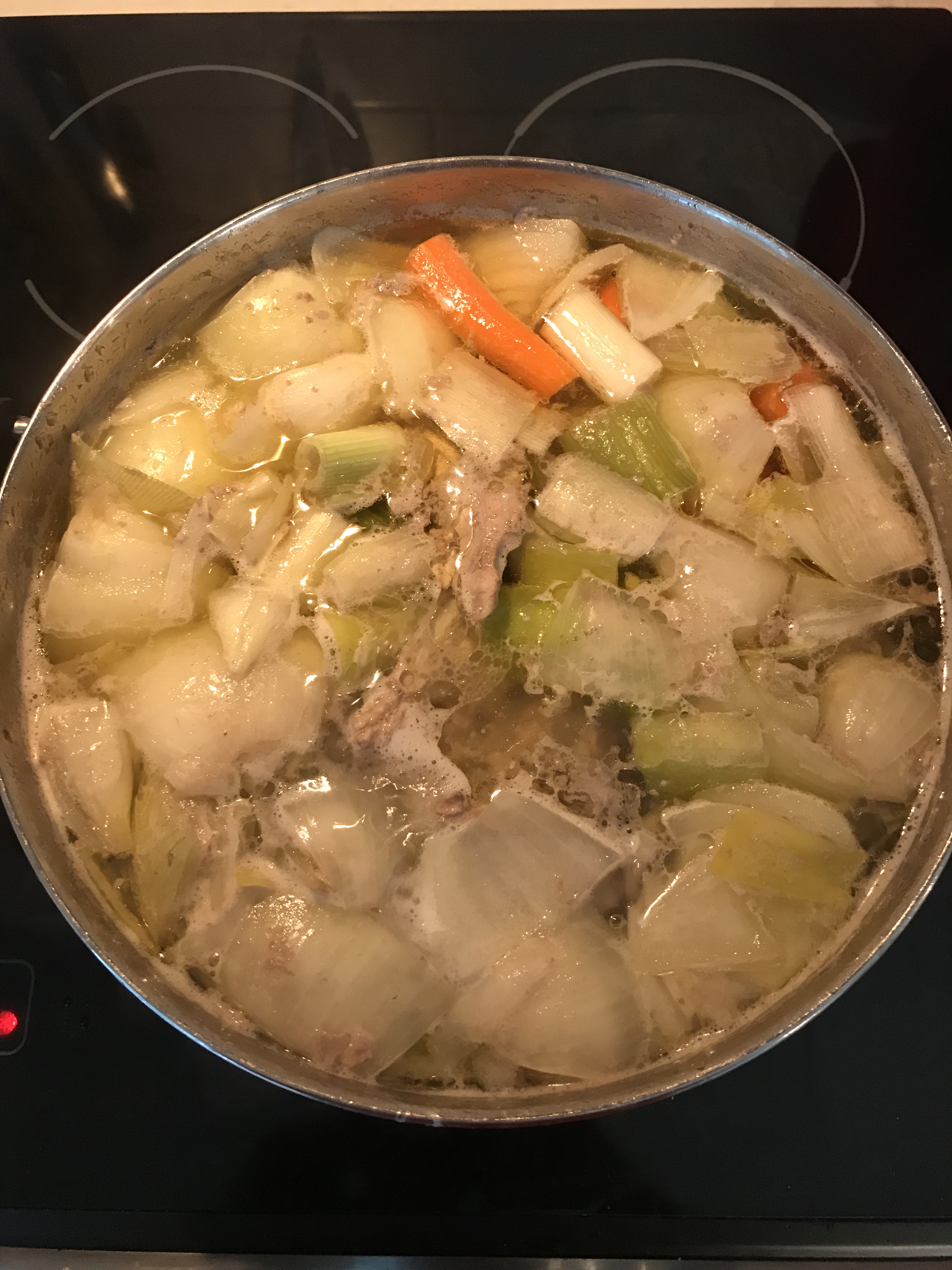 Bones and Veg being brought to a boil.
